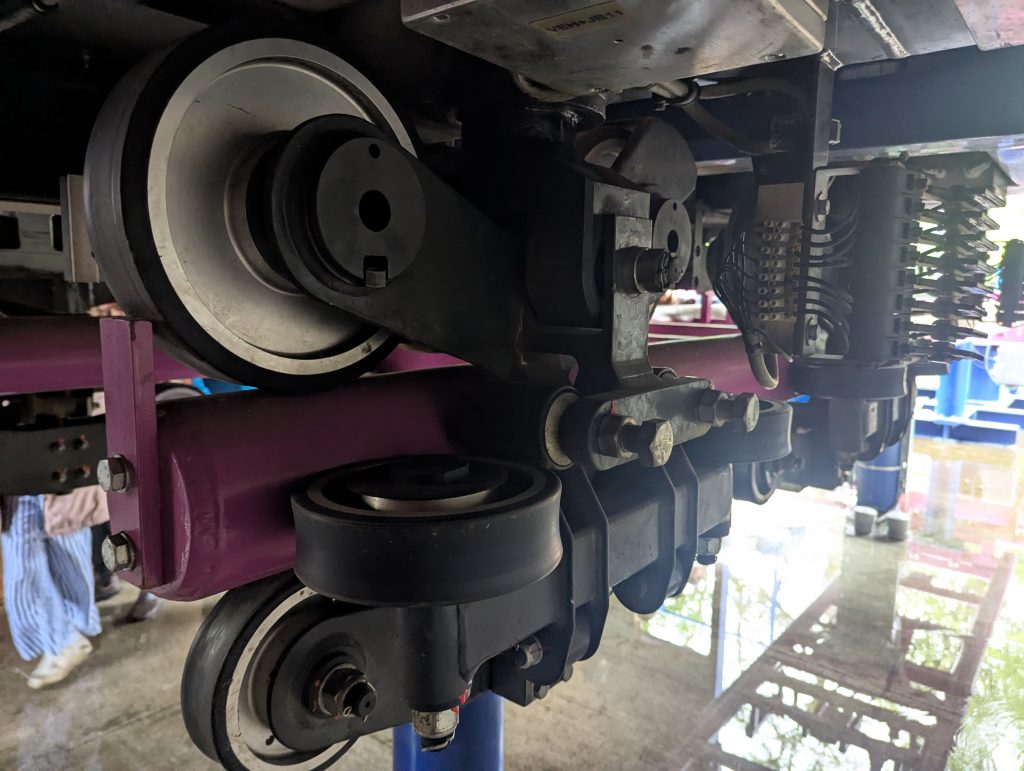Tom took us behind-the-scenes of the Adrenaline Peak ride (UNDER the ride), where we got to see the computer systems and sensors logic (including “PLCs” – Programmable Logic Controller) that run the Adrenaline Peak coaster.