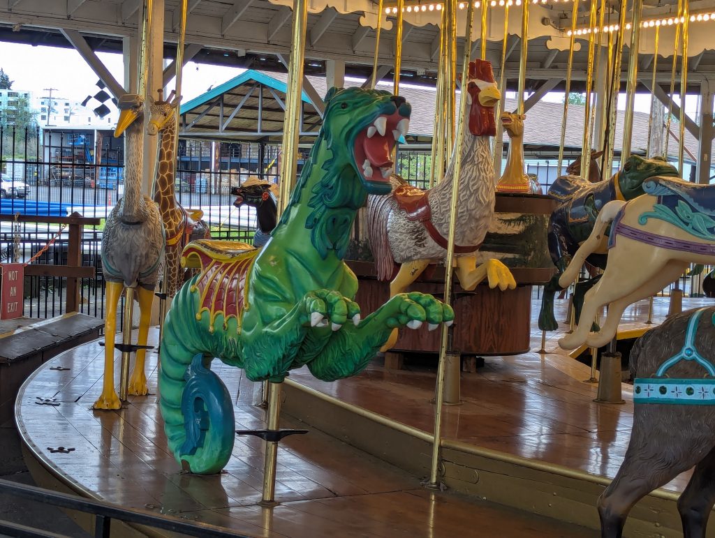 This year marks the 100th anniversary of the Carousel (technically a Menagerie, since it contains not only animals), built in 1912 by Herschell-Spillman Company, and arriving at the park in 1926!