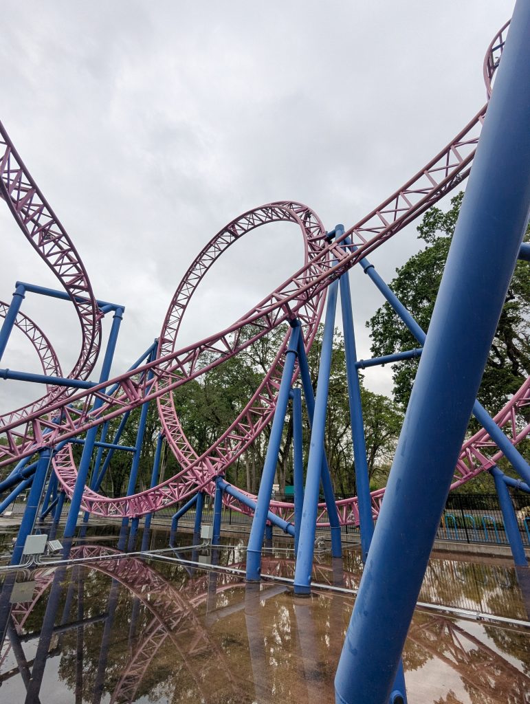 Safety First: The cars have a three-wheel system (runners, guides, and upstops) and are completely disassembled and rebuilt every single year for safety! During operation, the coaster is also inspected 3 times per day.